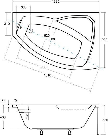 Акриловая ванна Rima 140x90 P - арт. WAR-140-NP.