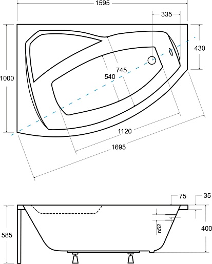 Акриловая ванна Rima 160x100 L - арт. WAR-160-NL.