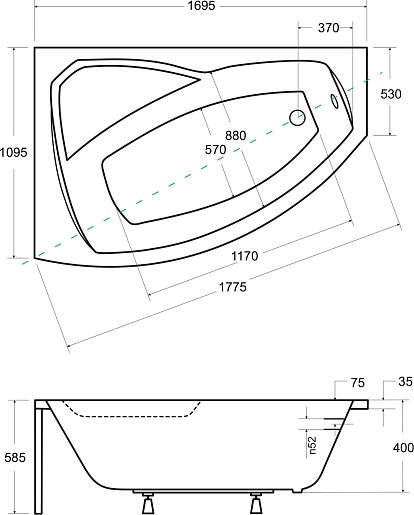 Акриловая ванна Rima 170x100 L - арт. WAR-170-NL.