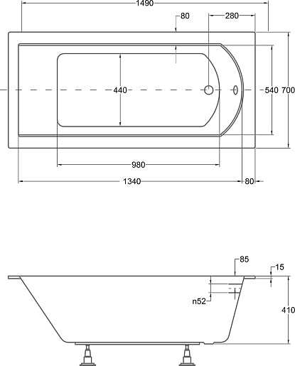 Комплектация: ванна, ножки.