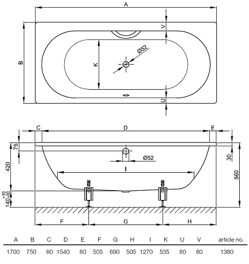 Стальная ванна "Starlet" - арт. 1380-00 plus