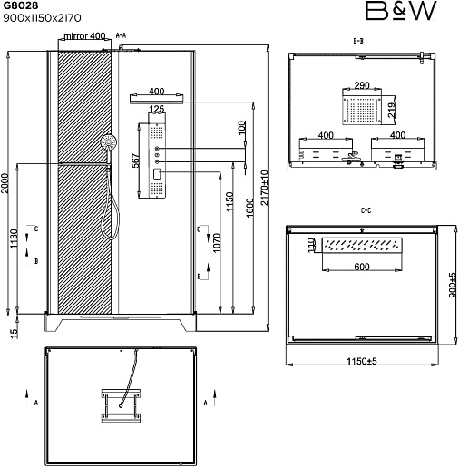 Душевая кабина Black&White Galaxy G8028 - арт. 8028000.