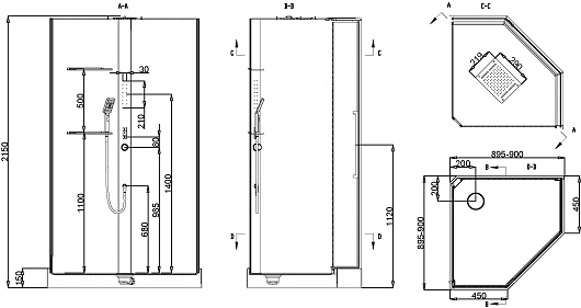 - Ручной душ 3-режимный.