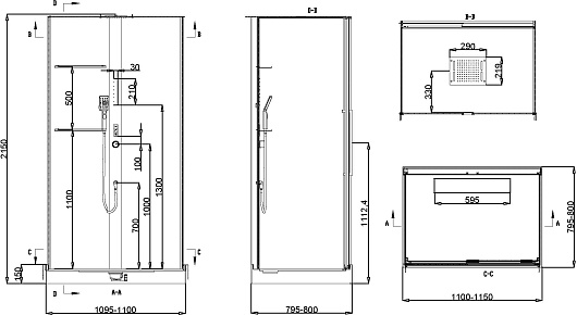 - Верхний душ: 290 х 219 мм.