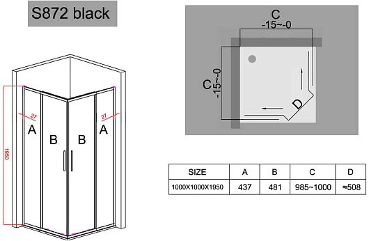 Душевой уголок Black&White Stellar Wind S872 Black 100x100 - арт. 8721010.