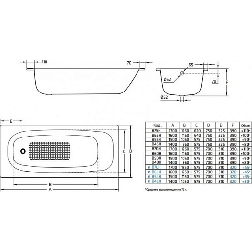 BLB Стальная ванна Universal HG 170x75 с отверстиями для ручек