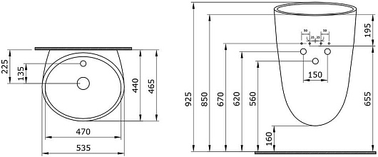 Комплектация: раковина, слив, керамическая заглушка для слива.
