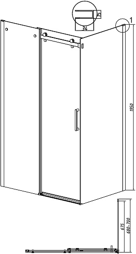 Боковая стенка Grossman Classic 70x195 профиль черный матовый стекло прозрачное - арт. 200.K33.04.70.21.10.