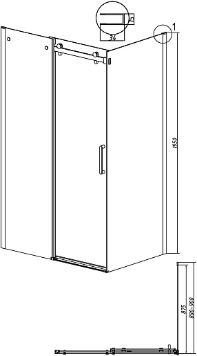 Боковая стенка Grossman Classic 90x195 профиль графит сатин стекло прозрачное - арт. 200.K33.04.90.42.00.