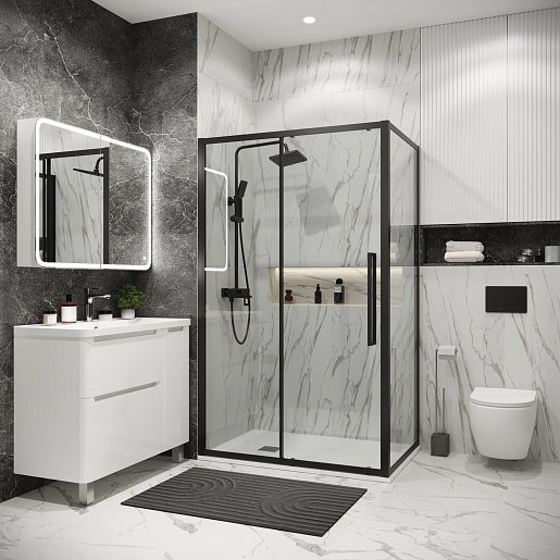 Grossman Боковая стенка Cosmo 70x195 профиль черный матовый стекло прозрачное