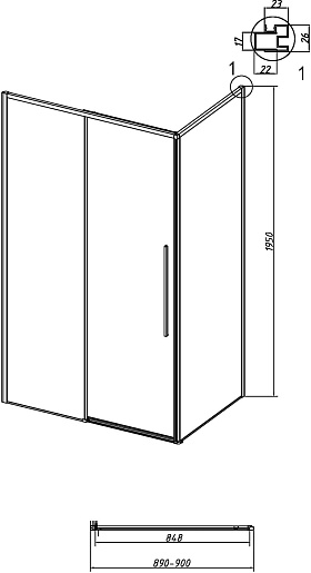 Боковая стенка Grossman Galaxy 90x195 профиль хром стекло прозрачное - арт. 200.K33.01.90.10.00.