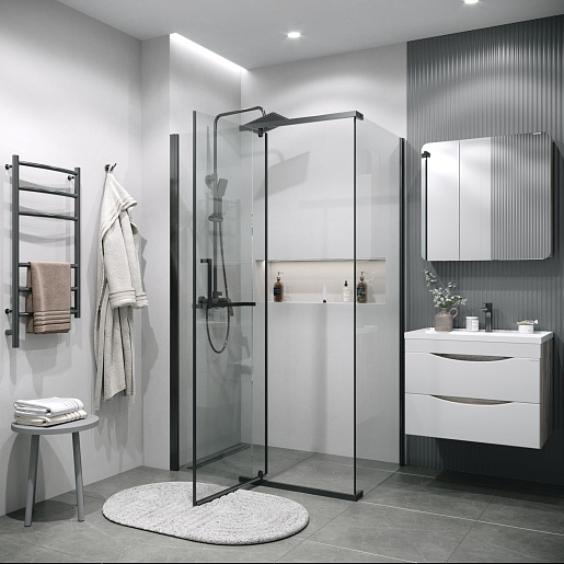 Grossman Боковая стенка Pragma 80x195 профиль графит сатин стекло прозрачное