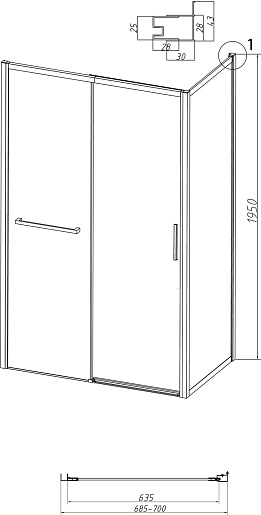Боковая стенка Grossman Style 70x195 профиль черный матовый стекло шиншилла - арт. 200.K33.05.70.21.02.