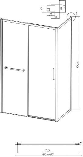 Боковая стенка Grossman Style 80x195 профиль черный матовый стекло тонированное - арт. 200.K33.05.80.21.10.