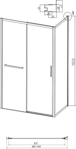 Боковая стенка Grossman Style 90x195 профиль черный матовый стекло шиншилла - арт. 200.K33.05.90.21.02.