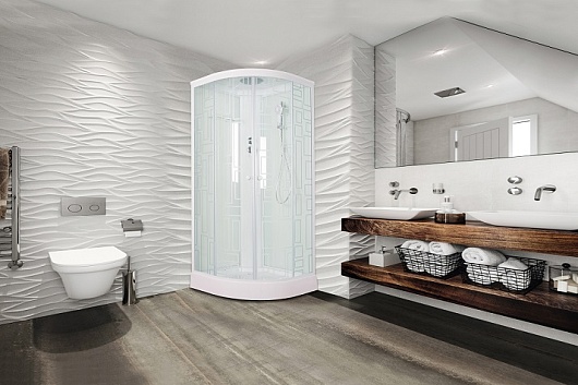 - 100% безсиликоновая сборка за счет наличия на поддоне акрилового бортика, высотой более 2 см, внутри которого устанавливается профиль душевой кабины