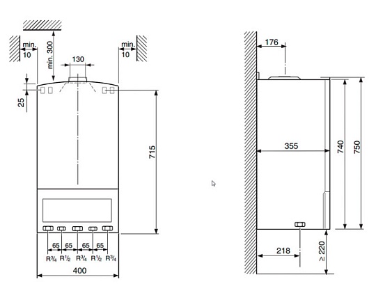- Присоединение газопровода 3/4"