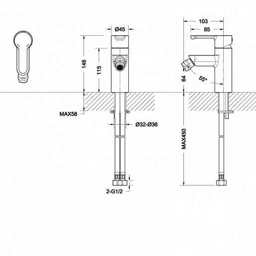 - гибкая подводка G1/2