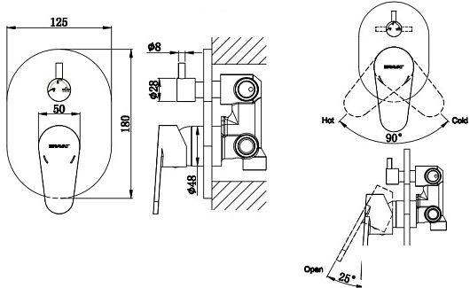 Смеситель встраиваемый в стену 3-функции (внешняя часть) :