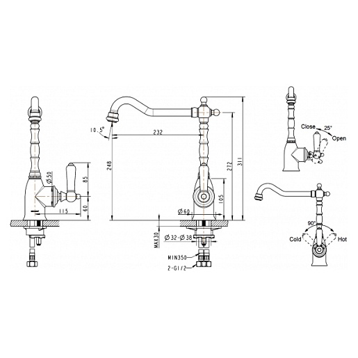 - поворотный излив длиной 23.2 см