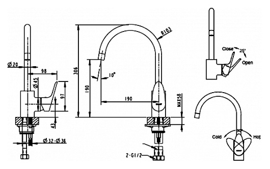 - поворотный излив длиной 19 см