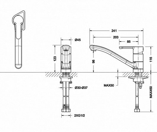 Высота излива, мм: