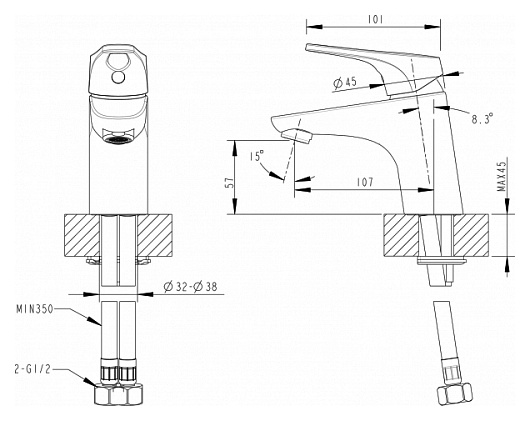 - фиксированный излив длиной 10.7 см