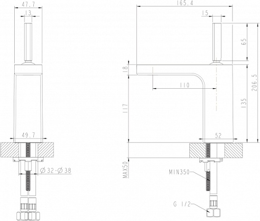 Высота излива, мм: