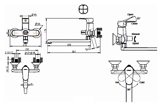 - излив 30 см