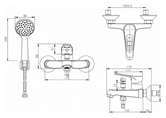 - в комплект входит смеситель, лейка, шланг.