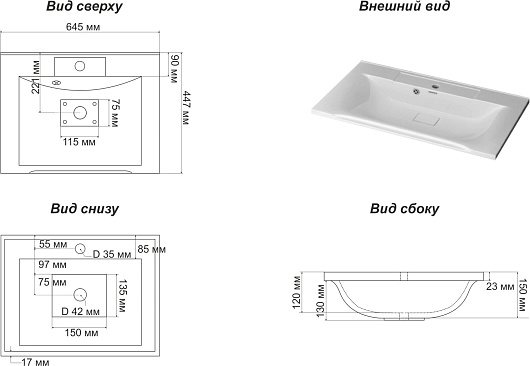 Комплектация: тумба, раковина, зеркальный шкаф.