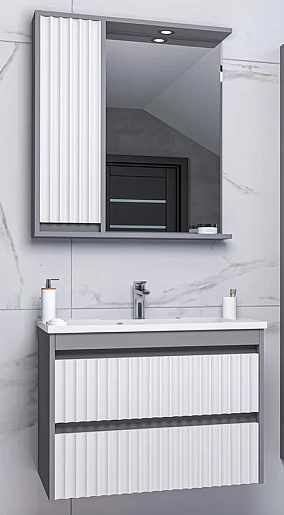 Зеркальный шкаф Balaton 90 L серый/белый