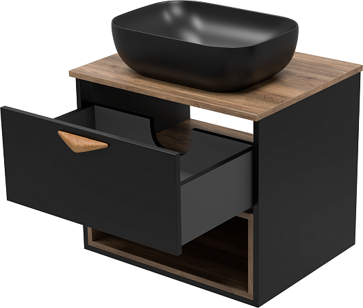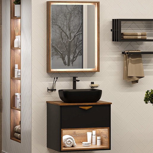 Тумба под раковину Bergen 60 подвесная дуб галифакс олово/черная