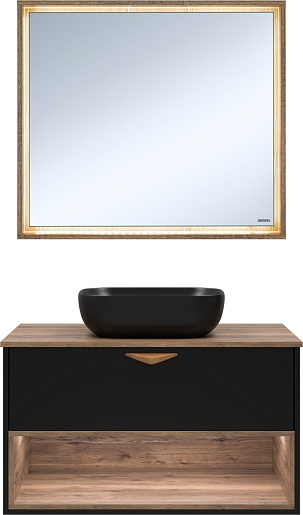 Brevita Мебель для ванной Bergen 90 подвесная дуб галифакс олово/черная
