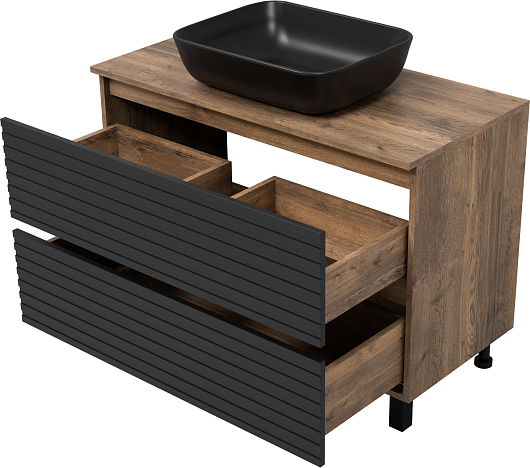 Тумба под раковину Dakota 100 дуб галифакс олово/черный кварц
