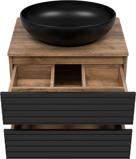 Тумба под раковину Dakota 60 подвесная дуб галифакс олово/черный кварц