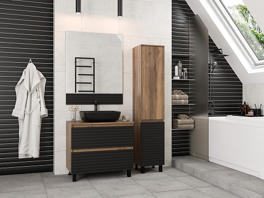 Brevita Мебель для ванной Dakota 80 дуб галифакс олово/черный кварц
