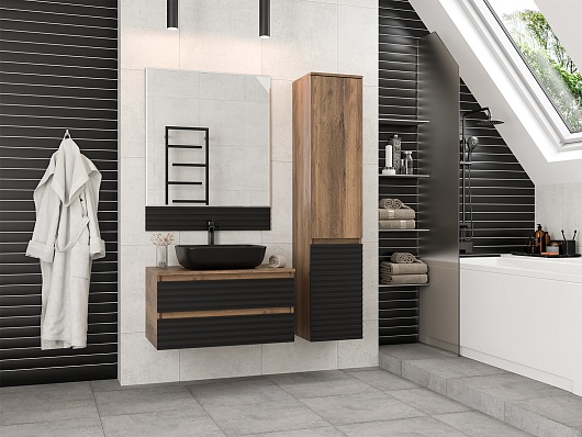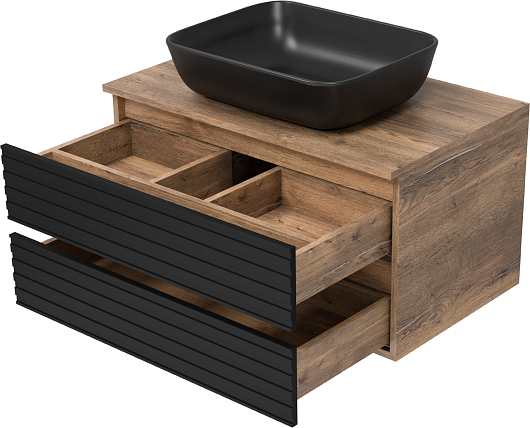Тумба под раковину Dakota 80 подвесная дуб галифакс олово/черный кварц