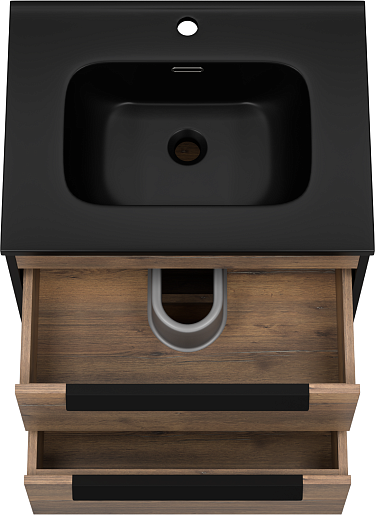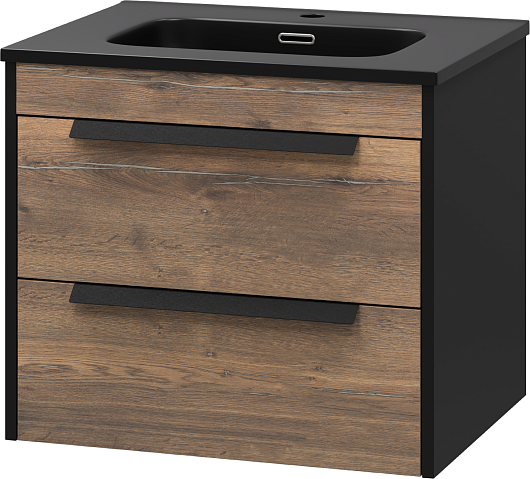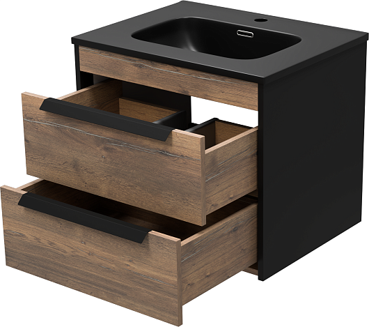 Тумба под раковину Monsour 60 подвесная дуб галифакс олово/черный кварц