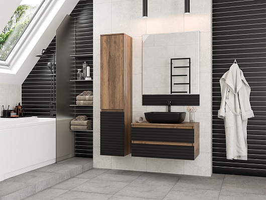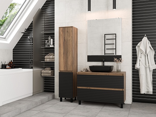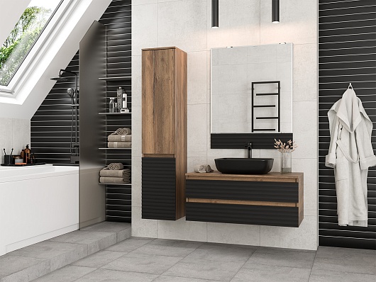 Brevita Шкаф пенал Dakota 35 L дуб галифакс олово/черный кварц