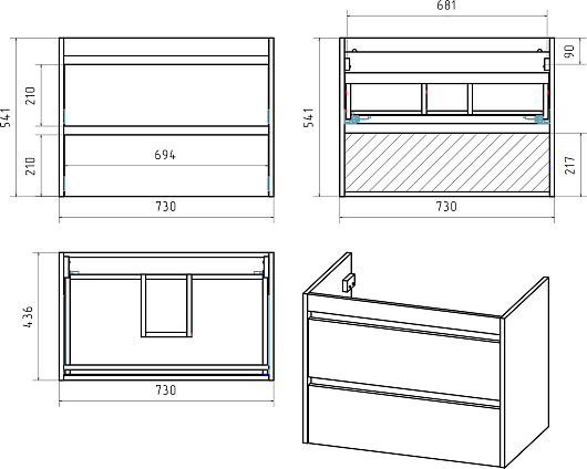 - Противоскользящие коврики по всей нижней поверхности выдвижных ящиков.