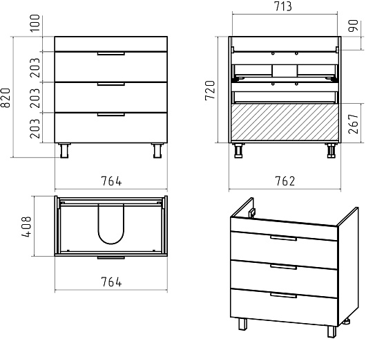 Тумба под раковину Brevita Gloster 80 белая - арт. GLOS-06080-01-2.
