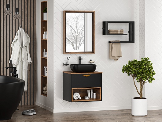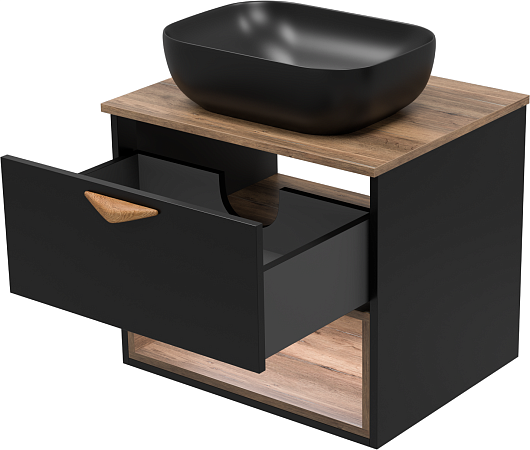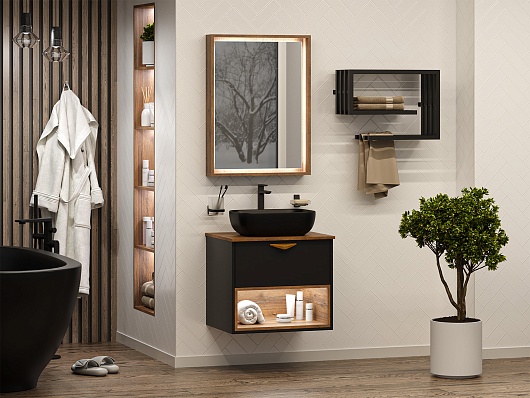 Тумба под раковину Bergen 60 подвесная дуб галифакс олово/черная