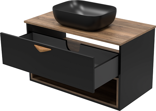 Тумба под раковину Bergen 90 подвесная дуб галифакс олово/черная