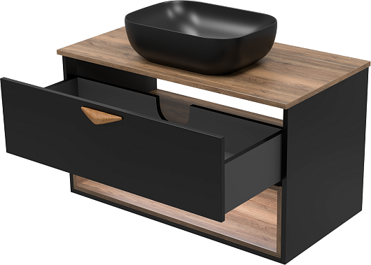 - Цвет: дуб галифакс олово (темное дерево), черный матовый.