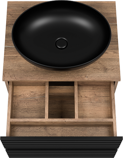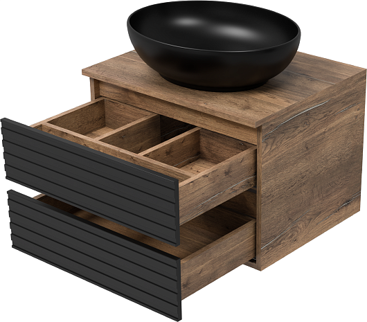 Тумба под раковину Dakota 60 подвесная дуб галифакс олово/черный кварц