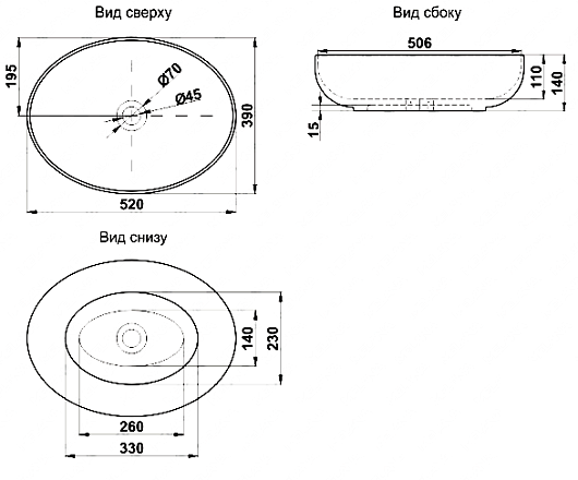 Мебельная раковина Melana 52 MLN-320316MB черная матовая