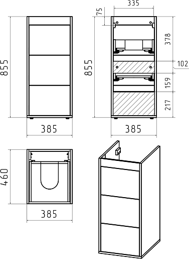 Комплектация: тумба, раковина.