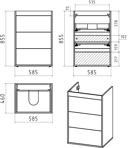 Тумба с раковиной Brevita Grafit 60 под стиральную машину белая - арт. GRA-01060-023Я / MAHAG6730-120 / ART43SLWB01I.