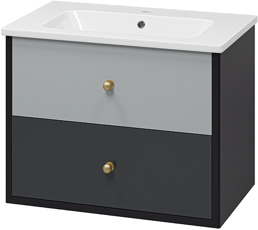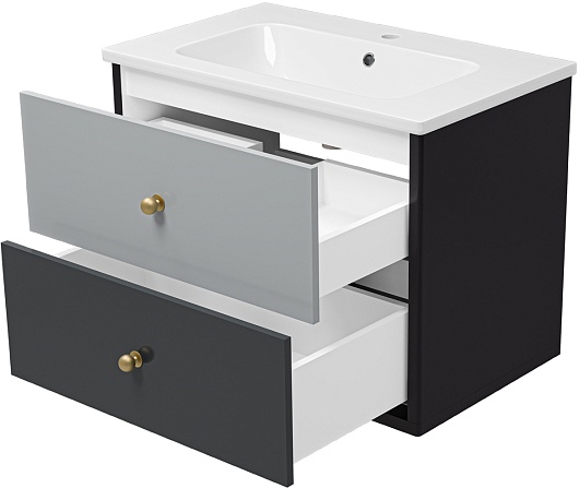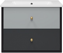 Тумба под раковину Кристиан 80 подвесная серая/черная